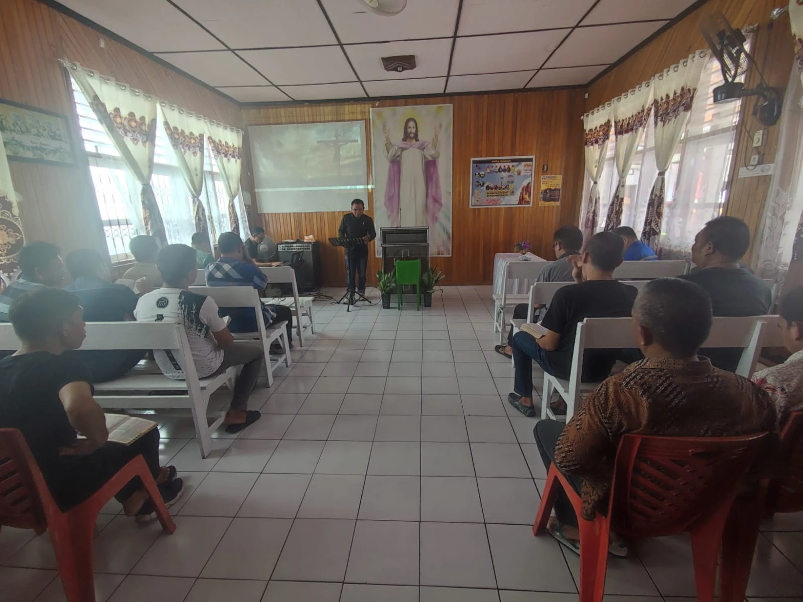 Wartanesia – Bersinergi dengan Kementerian Agama (Kemenag) Kota Palu, Rumah Tahanan Negara (Rutan) Kelas IIA Palu Kanwil Kementerian Hukum dan HAM Sulawesi Tengah (Kanwil Kemenkumham Sulteng) gelar pembinaan kerohanian melalui ibadah rutin bagi warga binaan yang beragama Kristen, Selasa (2/4).