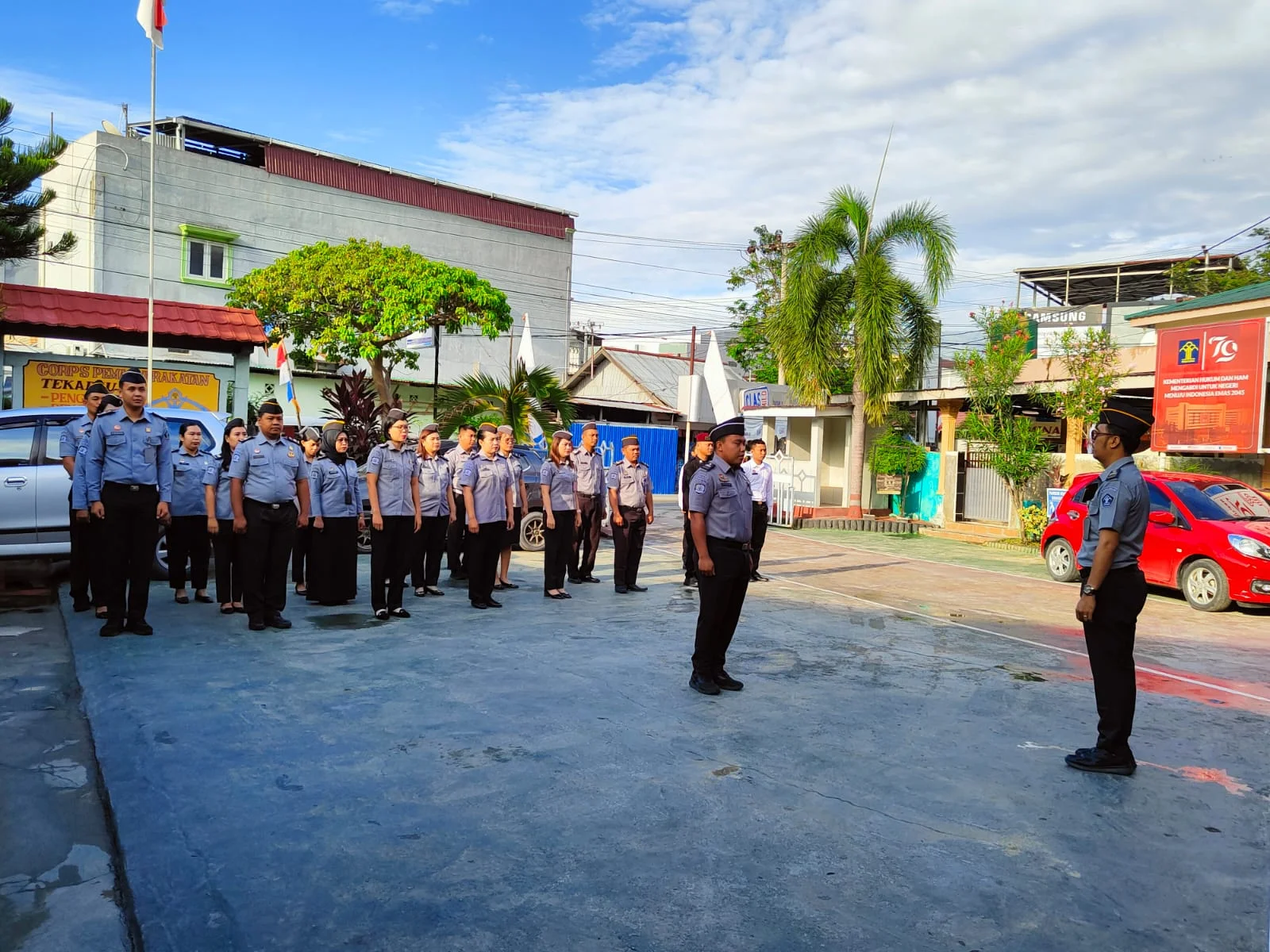Wartanesia – Rumah Tahanan Negara (Rutan) Kelas IIA Palu Kanwil Kementerian Hukum dan HAM Sulawesi Tengah menggelar apel pagi pegawai. Bertindak sebagai pembina apel, Kepala Subseksi Pengelolaan Rutan, Radotman Sinaga tekankan kerja profesional dan tingkatkan kolaborasi, Senin (26/8).